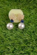 Elevate your style with these Golden Crystal Pearl Drop Earrings, designed to add charm and elegance to any outfit. The sparkling golden crystal studs are paired with stunning blue stones and finished with classic pearl drops, creating a luxurious and stylish look.
