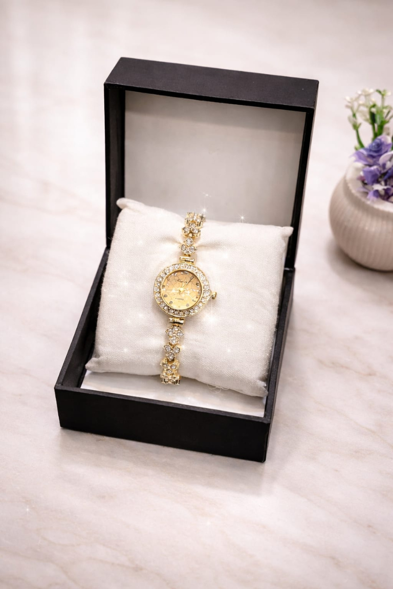 This stunning crystal bracelet watch combines elegance and sparkle in one beautiful design. With a fully stone-studded dial and a stylish bracelet chain, it adds a luxurious touch to any outfit—perfect for parties, dinners, events, or daily wear.